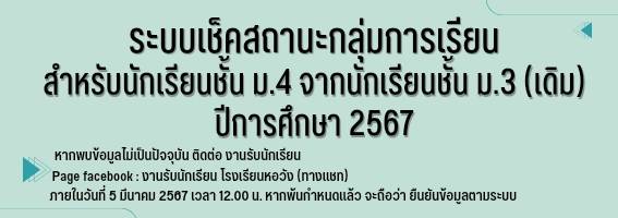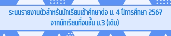 ประกาศการรับนักเรียนชั้นมัธยมศึกษาปีที่ 4 จากนักเรียนที่จบชั้นมัธยมศึกษาปีที่ 3 (เดิม) ปีการศึกษา 2567